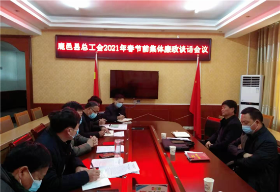 近日,鹿邑縣總工會(huì)召開2021年春節(jié)前集體廉政談話會(huì)議??h總工會(huì)黨組書記、常務(wù)副主席武超主持會(huì)議,班子成員魏國浩、郭振、李福云、梁曉暉、丁杰出席會(huì)議。派駐紀(jì)檢組組長盛旭和李付真參加會(huì)議。武超傳達(dá)了鹿邑縣領(lǐng)導(dǎo)干部春節(jié)前集體廉政談話會(huì)議精神。派駐紀(jì)檢組組長盛旭給縣總工會(huì)領(lǐng)導(dǎo)班子進(jìn)行了2021年春節(jié)前集體廉政談話。
