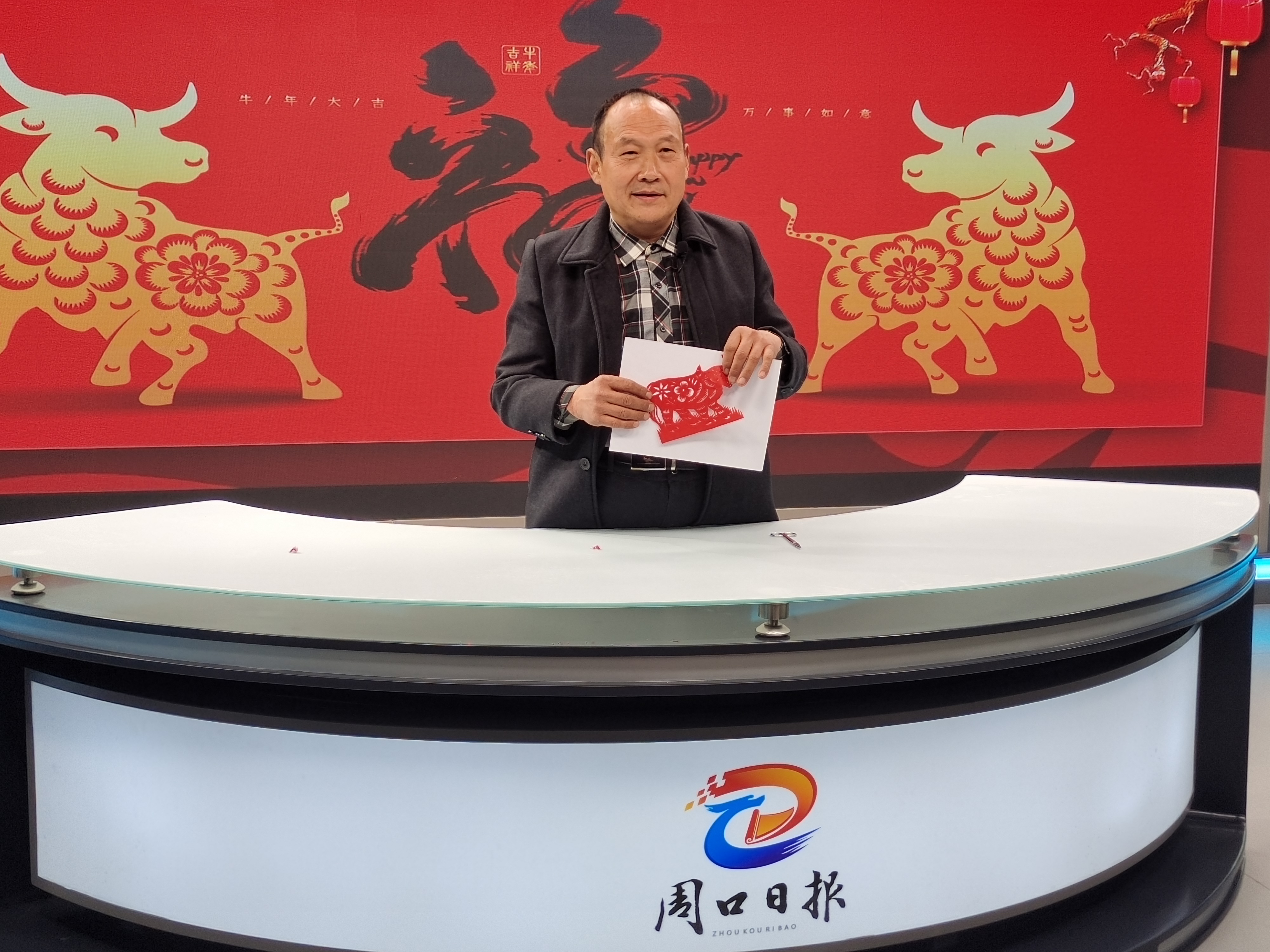 一張正方形紅紙,經(jīng)多次對(duì)折后,兩剪刀,剪出一個(gè)大紅雙“喜”字。1月29日,在周口日?qǐng)?bào)融媒體演播室,河南省民間藝術(shù)學(xué)會(huì)會(huì)員,剪紙藝術(shù)委員會(huì)理事,“非遺”傳承人王銀生亮出“兩剪子剪出一個(gè)紅雙喜”的絕活。