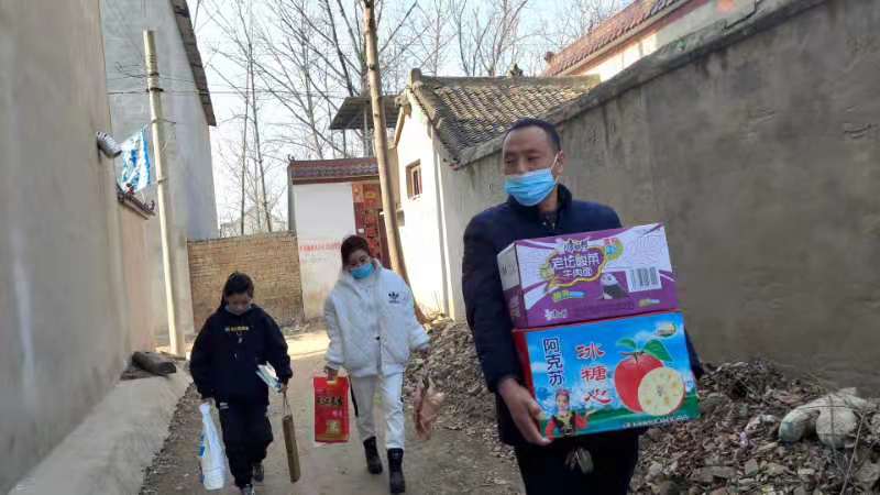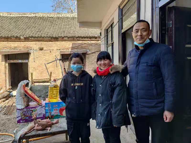 1月30日一大早孫振江都從太康縣城驅(qū)車趕往高朗鄉(xiāng)超市門前買了水果方便面十多件“2021讓幸福來敲門·羊肉哥孫合理愛心團隊”孫合理、劉曉愛、孫振江、孫夢露一行四人走進周口市太康縣高朗鄉(xiāng)趙寨行政村新黃村困境兒童黃艷艷的家中。