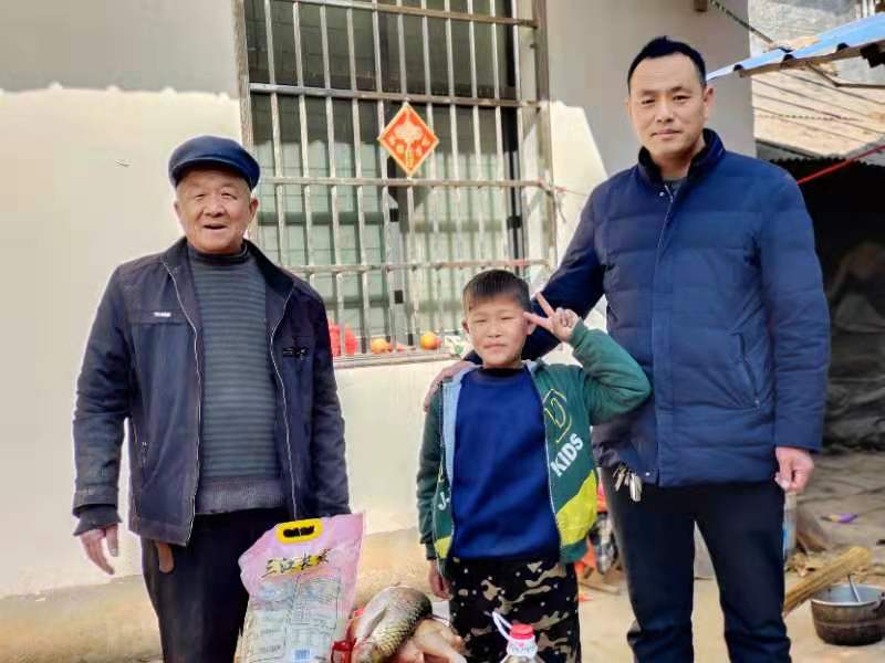 1月31日下午,孫合理與孫振江又來到太康縣板橋鎮(zhèn)韓家村,7歲的韓奇與二人是“老熟人”了。小家伙兒與66歲的爺爺相依為命。韓奇一會兒抱著孫振江一會兒抱著羊肉哥,十分親切。韓奇爺爺說,這么遠,你們還跑過來。孩子正鬧著吃魚吃肉哩,今天沒想到你們送來了。