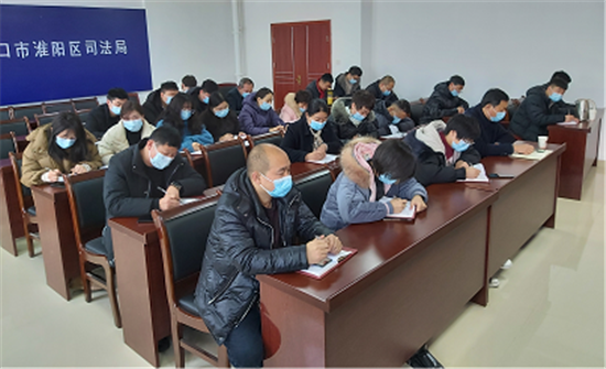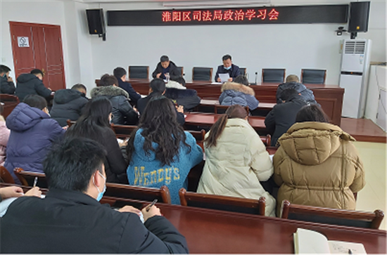 近日,淮陽(yáng)區(qū)司法局組織全局干部職工召開(kāi)政治學(xué)習(xí)會(huì)議,傳達(dá)學(xué)習(xí)習(xí)近平總書(shū)記在十九屆中央紀(jì)委五次全會(huì)上的重要講話精神,區(qū)司法局副局長(zhǎng)魏進(jìn)軍主持會(huì)議。