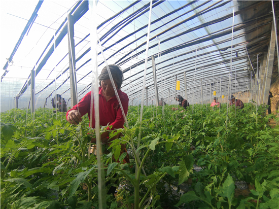 2月2日上午,雖是寒冬臘月,但西華縣皮營(yíng)辦事處潤(rùn)農(nóng)種植合作社里卻春意盎然:150畝大棚番茄長(zhǎng)勢(shì)喜人,菜農(nóng)們喜上眉梢,他們合計(jì)著一年的收成,談?wù)撝蛩阗?gòu)置的年貨,陣陣歡笑聲不時(shí)從大棚里傳出......