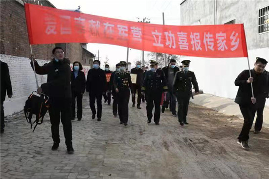 2月2日上午,鄲城縣委常委、人武部政委金仁旺,縣政府黨組成員張仁杰在縣退役軍人事務(wù)局負(fù)責(zé)人的陪同下,到石槽鎮(zhèn)、秋渠鄉(xiāng)走訪慰問(wèn)榮立二等功的現(xiàn)役軍人于華興和張計(jì)成的家人,為其家人送上二等功喜報(bào)、慰問(wèn)金、慰問(wèn)品及黨和政府的誠(chéng)摯慰問(wèn)。