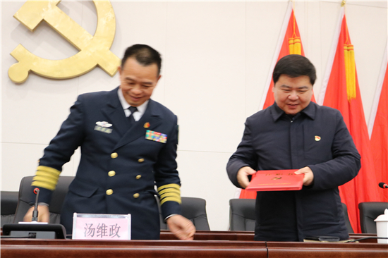 2月3日,鹿邑縣召開人武部黨委第一書記任職宣布大會(huì)。周口軍分區(qū)司令員湯維政出席并為李剛同志頒發(fā)任命書:縣委書記、縣長(zhǎng)李剛?cè)温挂乜h人武部黨委第一書記。周口市委組織部部務(wù)委員王軍、周口軍分區(qū)政治工作處副團(tuán)職干事孫波、縣人武部政委李峰、人武部部長(zhǎng)范亞光出席會(huì)議。