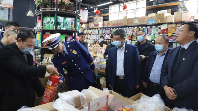 為落實(shí)河南省煙花爆竹禁售禁放工作電視電話會(huì)議和全市煙花爆竹禁售禁放暨春節(jié)期間污染防治工作會(huì)議精神,做好春節(jié)期間火災(zāi)預(yù)防、煙花爆竹禁售禁放工作,確保節(jié)日期間物資供應(yīng)充足、市場(chǎng)秩序持續(xù)穩(wěn)定,2月9日,周口港區(qū)黨委書記孫鵬前往轄區(qū)居民社區(qū)、市場(chǎng)督導(dǎo)春節(jié)期間各項(xiàng)保障工作落實(shí)情況。港區(qū)黨委委員杜廣賢、公安分局局長(zhǎng)康群泉陪同。