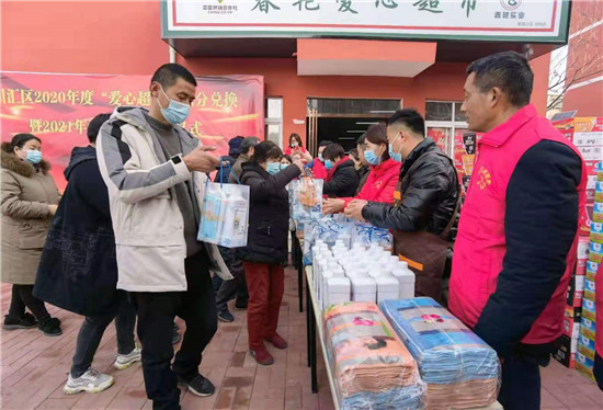 “現(xiàn)在,我們幫忙清理小區(qū)垃圾、打掃衛(wèi)生,都能換取積分兌換禮物。這是激勵(lì)我們多做好事兒啊!”2月3日上午,在由川匯區(qū)區(qū)委組織部、區(qū)社區(qū)建設(shè)管理局、區(qū)供銷合作社、荷花路街道辦事處主辦的2020年度“愛心超市”積分兌換暨2021年愛心捐贈(zèng)儀式上,郵政小區(qū)居民王新民等27名社區(qū)志愿者兌換了毛巾、香皂、消毒液等禮品,使他們對“好人有好報(bào)”這句話有了更深的認(rèn)識(shí)。
