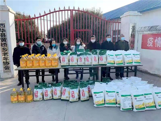當(dāng)日,西華縣電商產(chǎn)業(yè)園黨支部黨員、西華縣騰翔中藥材有限公司負(fù)責(zé)人孫向坤,帶領(lǐng)公司員工為黃橋鄉(xiāng)養(yǎng)老院和艾崗鄉(xiāng)養(yǎng)老院送去米、面、油等慰問品,祝愿敬老院的老人們身體健康、萬事如意。