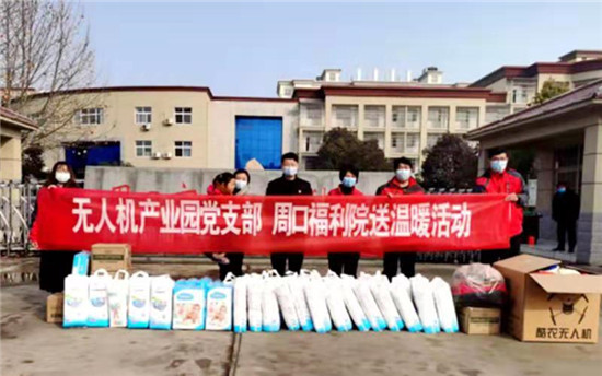 西華縣無人機產(chǎn)業(yè)園黨支部書記于天龍、縣“兩新”組織黨工委辦公室主任閆懷,帶領(lǐng)黨員、預(yù)備黨員、入黨積極分子,為周口市社會福利院的小朋友免費送去購買的尿不濕、洗衣液以及捐贈的衣服等用品,讓小朋友們在即將來臨的春節(jié),感受到黨的關(guān)懷及節(jié)日的溫暖。周口市福利院齊院長詳細(xì)介紹了福利院的基本情況及小朋友們的身體情況、生活狀況等,并對無人機產(chǎn)業(yè)園黨支部表示感謝。