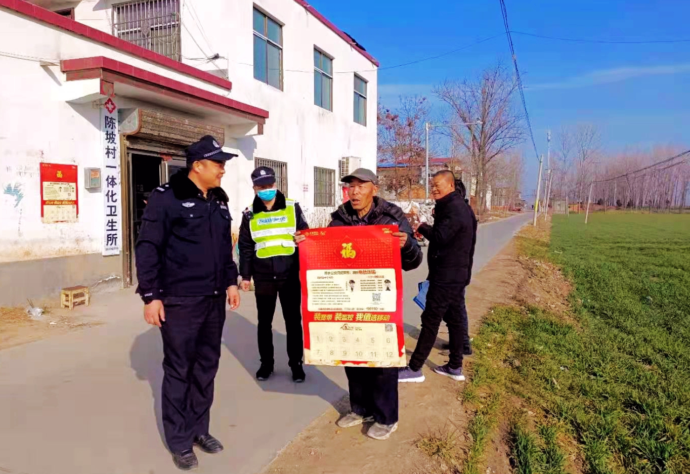為增強(qiáng)廣大群眾的安全防范意識(shí),進(jìn)一步提升群眾的安全感和滿意度,2月4日,商水縣公安局組織民警、輔警把印有安全防范常識(shí)的“平安?!彼偷捷爡^(qū)農(nóng)家,并借機(jī)向群眾宣傳安全防范知識(shí)。圖為該縣郝崗派出所向陳坡村群眾介紹冬季防盜、防火、防煤氣、防詐騙安全知識(shí)。