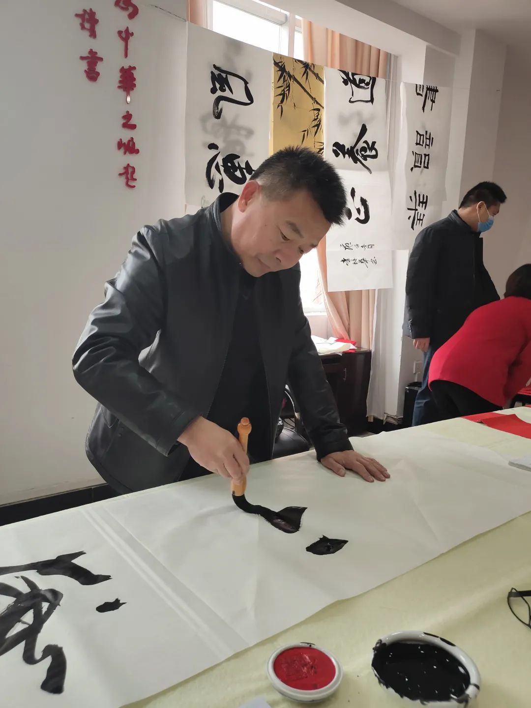 當(dāng)日下午,李培華同書法家和書法愛好者們一起揮毫潑墨,以文會(huì)友,各展才華,切磋交流,一張張惟妙惟肖的畫作,一幅幅行云流水的書法,一副副雋秀工整的春聯(lián),一個(gè)個(gè)喜氣洋洋的“福”字躍然紙上。楹聯(lián)飄香,墨香四溢,濃濃的年味撲面而至?,F(xiàn)場居民拿到自己心中滿意的充滿濃濃年味的“?!弊趾惋柡篮米85拇郝?lián),個(gè)個(gè)喜笑顏開,紛紛說道:“市場上買的春聯(lián)都是印刷品,雖然精美但缺乏生命力,現(xiàn)場寫的春聯(lián)更有年味、更有文化品位”。