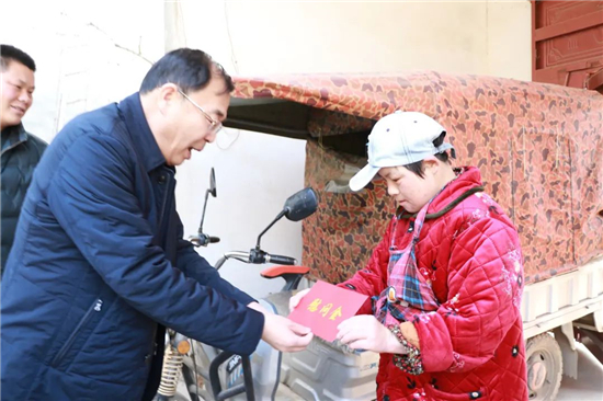 2月2日,市城鄉(xiāng)一體化示范區(qū)二級(jí)調(diào)研員丁有亮到搬口辦事處西趙行政村走訪慰問(wèn)殘疾人,區(qū)民政和退役軍人事務(wù)局局長(zhǎng)曾興參加活動(dòng)。