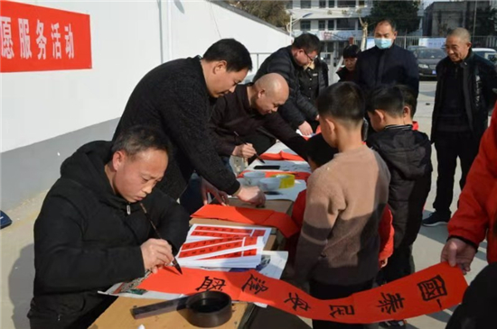 2月3日下午,陳州辦邦杰社區(qū)六中家屬院運動場上墨韻飄香,熱鬧非凡,川匯區(qū)教育體育局組織6位教師志愿者開展“新春佳節(jié)送溫暖、和和美美過新年”義寫春聯(lián)活動。