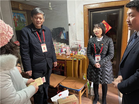 小橋街道辦事處人大代表聯(lián)絡(luò)站組織進(jìn)站代表對轄區(qū)困難群眾進(jìn)行走訪慰問,將慰問金和生活物資交到他們手中,并及時交談了解他們在生活方面存在的困難,鼓勵他們堅定生活信心,以積極、樂觀的心態(tài)面對困難,并向他們致以新年的祝福。