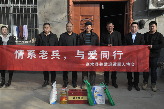 “春節(jié)到了,我代表縣關(guān)愛退役軍人協(xié)會(huì)向你們?nèi)覇柡茫兄x你們?yōu)閲朗聵I(yè)做出的貢獻(xiàn)。如果家里有什么困難,可以直接和協(xié)會(huì)聯(lián)系,我們一定全力幫助!”2月5日上午,在商水縣化河鄉(xiāng)楊樹東村李海青家,商水縣關(guān)愛退役軍人協(xié)會(huì)會(huì)長朱贊偉握住退役青年李海青爺爺?shù)氖终f。