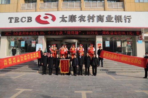 2月2日,一陣歡快的鑼鼓聲在謝安大道上奏響,定睛一看,是一隊(duì)精神飽滿、喜氣洋洋的整齊隊(duì)伍向太康農(nóng)商銀行走來,他們手持兩條分別印有“關(guān)愛老人弘揚(yáng)傳統(tǒng)美德,民銀同建共筑行業(yè)輝煌”“真情關(guān)愛老人,溫暖社區(qū)群眾”的橫幅,并將一副印有“真情關(guān)懷為老人,溫暖社區(qū)千萬家”字樣的錦旗送到該行黨委副書記黃玲的手中。“給太康農(nóng)商銀行點(diǎn)個(gè)贊,真的是把老年人的心都捂熱啦,我們都感激你們,不愧是咱老百姓自己的銀行!”一位社區(qū)工作者說道。