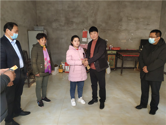 “你要好好學(xué)習(xí),勇敢堅強,樂觀面對生活,有困難我們會盡力幫助你!”2月7日,在鄲城縣汲水鄉(xiāng)張嶺村,該鄉(xiāng)副鄉(xiāng)長楊衛(wèi)杰、愛心人士魏昌宏、汲水二中校長陳法杰把2000元錢和棉襖、米面油等生活用品送到建檔立卡貧困戶學(xué)生張慧敏手中,為她送去特別的關(guān)懷和溫暖。