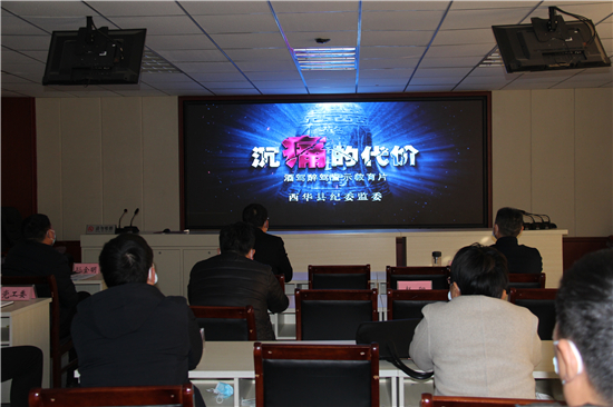 隨后,與會人員集中觀看了《沉痛的代價——黨員公職人員酒駕醉駕警示錄》《向誣告陷害亮劍》警示教育片。