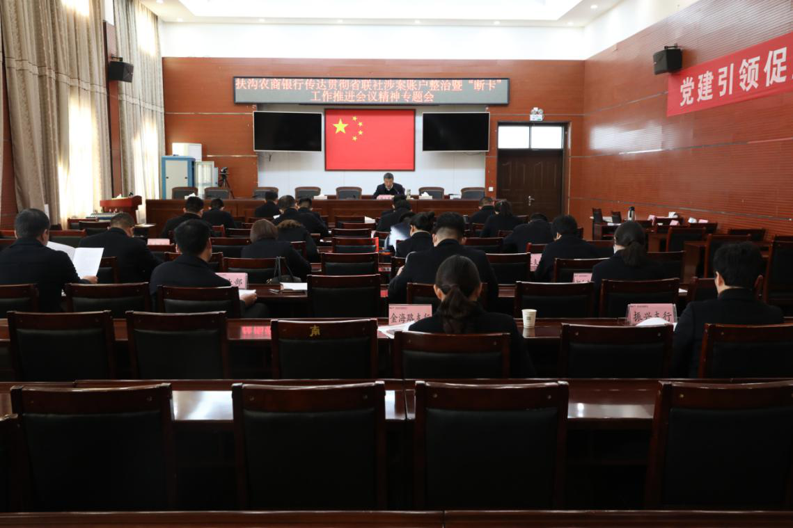 近日,扶溝農(nóng)商銀行在總行六樓會議室召開專題會議,傳達貫徹全省農(nóng)信社涉案賬戶整治暨“斷卡”工作推進會議精神,該行黨委委員、副行長韓云勇主持會議,各支行行長及相關(guān)部室經(jīng)理共計30余人參加會議。