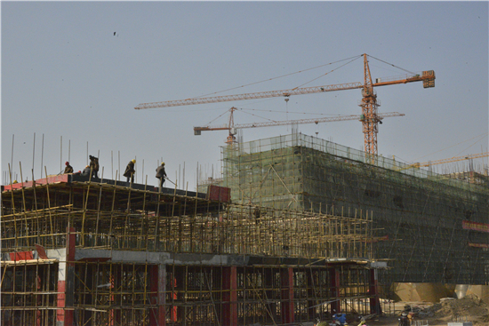 2月8日臘月26日,在項(xiàng)目施工工地上,工人們正忙個(gè)不停:已經(jīng)封頂?shù)母郀t上工人們正在對(duì)最后的設(shè)備進(jìn)行安裝、即將峻工的儲(chǔ)料棚工地上工人們正在澆筑混凝土……工地上一派繁忙,塔吊長(zhǎng)長(zhǎng)的“手臂”來(lái)回?cái)[動(dòng)。