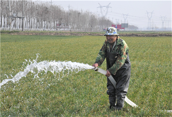 春節(jié)前夕,豫東大地旱象抬頭,全國超級產(chǎn)糧大縣商水縣農(nóng)業(yè)部門一邊聘請市、縣專業(yè)技術人員實地指導,一邊動員農(nóng)民迅速投入以抗旱澆麥、化學除草為重點的麥田管理工作。許多農(nóng)民匆匆買完年貨就開始下地抗旱澆麥,隨處可見農(nóng)民運水泵、擺管子、疏溝渠的身影,萬頃麥田一派繁忙景象。