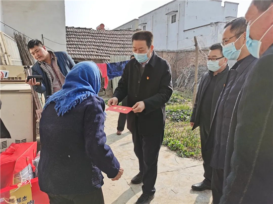 隨后,閆立超來到賈寨行政村,看望困難群眾賈國永和高鳳英。在賈國永家,閆立超為他遞上慰問金,親切與她交談,細(xì)心了解賈國永目前生活生產(chǎn)狀況。