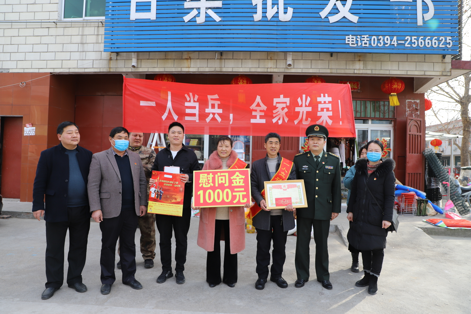 “一人當兵,全家光榮”。為貫徹落實習近平總書記“讓軍人成為全社會尊崇的職業(yè)”指示精神,同時也為了在全區(qū)范圍內(nèi)營造崇軍、擁軍、愛軍的社會氛圍,激勵廣大適齡青年參軍報國,為國防建設作貢獻的熱情。在春節(jié)來臨之際,黃泛區(qū)人民武裝部政委張勇協(xié)調(diào)經(jīng)開區(qū)黃泛區(qū)社會事務服務中心黨工委、退役軍人事務局等地方工作人員集中開展“送一份喜報,做一次動員”活動。