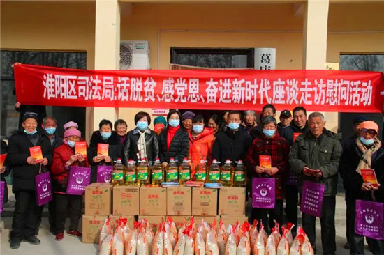 新春將至,淮陽(yáng)區(qū)司法局組織開展“話脫貧、感黨恩、奮進(jìn)新時(shí)代”主題活動(dòng)。2月8日上午,淮陽(yáng)區(qū)司法局黨組書記、局長(zhǎng)段志偉帶領(lǐng)局黨組一行人前往葛店鄉(xiāng)代集行政村慰問貧困戶、查看村居環(huán)境整治和基層黨建工作開展情況,并與村兩委干部、黨員和貧困戶代表召開座談會(huì)。