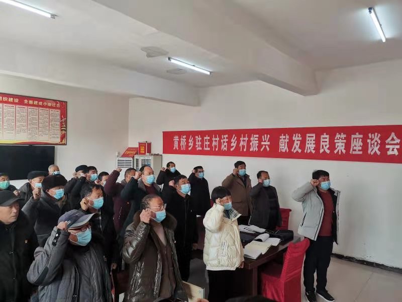 “我志愿加入中國共產(chǎn)黨……”駐莊村黨支部書記劉廣濤帶領(lǐng)與會(huì)黨員開展重溫入黨誓詞活動(dòng),面對(duì)黨旗,舉起右手,黨徽在胸前熠熠閃耀。隨后,以“微黨課”的形式,劉廣濤通報(bào)了家鄉(xiāng)變化,駐村第一書記張振芳領(lǐng)學(xué)了《習(xí)近平調(diào)研指導(dǎo)過的貧困村脫貧紀(jì)實(shí)》,與返鄉(xiāng)黨員們共話振興路,暢談發(fā)展良策。