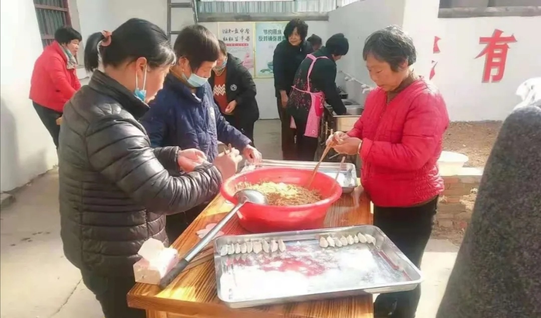 “我來(lái)搓面勁兒”“我來(lái)?yè){皮兒”“我來(lái)包餃子”……奉母鎮(zhèn)前邵村“鄉(xiāng)村大食堂”里一派熱鬧景象,該村鄉(xiāng)村振興文藝宣傳隊(duì)的十余名婦女同志自告奮勇,爭(zhēng)先在除夕晚上的團(tuán)圓飯上“露一手”。大家有說(shuō)有笑,圍在數(shù)平方米的巨大案板前,拿出了看家本領(lǐng),分工協(xié)作,揉面、搟皮、包餃子,個(gè)個(gè)動(dòng)作嫻熟,包起餃子來(lái)麻利干練,不知不覺(jué)間,面前的盤子里就放滿了餃子。 “今天晚上,我們每人都要炒兩個(gè)自家拿手菜,只能多不能少,邀請(qǐng)我們的老隊(duì)長(zhǎng)、老隊(duì)員都來(lái)一起過(guò)除夕,看春晚,守歲!”在七二村“鄉(xiāng)村大食堂里”,支部書(shū)記何世圈給村“三委”班子下了硬性任務(wù)。