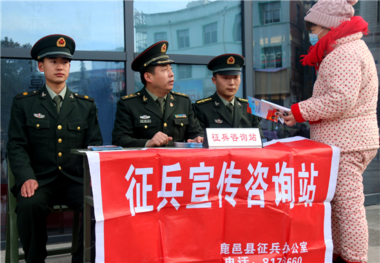 今年征兵工作展開(kāi)后,該縣征兵辦公室在搞好兵役登記的同時(shí),認(rèn)真制訂征兵工作宣傳計(jì)劃??h委、縣政府和縣人武部領(lǐng)導(dǎo)積極主動(dòng)帶領(lǐng)縣征兵辦公室工作人員走上街頭宣傳兵役法規(guī);通過(guò)聘請(qǐng)英模人物擔(dān)任征兵宣傳形象大使 ,春節(jié)期間為現(xiàn)役軍人家庭送立功喜報(bào)等渠道,大力宣傳大學(xué)畢業(yè)生參軍優(yōu)惠政策;縣融媒體中心、政府網(wǎng)站開(kāi)辟了專(zhuān)題欄目,制作專(zhuān)題網(wǎng)頁(yè),連續(xù)播發(fā)征兵工作動(dòng)態(tài)信息;各鄉(xiāng)鎮(zhèn)張貼標(biāo)語(yǔ)、懸掛橫幅,組織宣傳車(chē)、鑼鼓隊(duì)穿梭在鄉(xiāng)村集市,大力宣傳征兵工作,營(yíng)造依法服兵役的濃厚氛圍。在此基礎(chǔ)上,縣人武部還組織機(jī)關(guān)干部職工、文職人員,鄉(xiāng)鎮(zhèn)武裝部專(zhuān)武干部、武裝委員和行政村武裝組員、“五兵編外指導(dǎo)員”,開(kāi)展“一帶一”活動(dòng),即一個(gè)人就近負(fù)責(zé)一個(gè)外出打工經(jīng)商的大學(xué)畢業(yè)生的報(bào)名應(yīng)征,給他們打電話、發(fā)微信,動(dòng)員他們返鄉(xiāng)應(yīng)征。