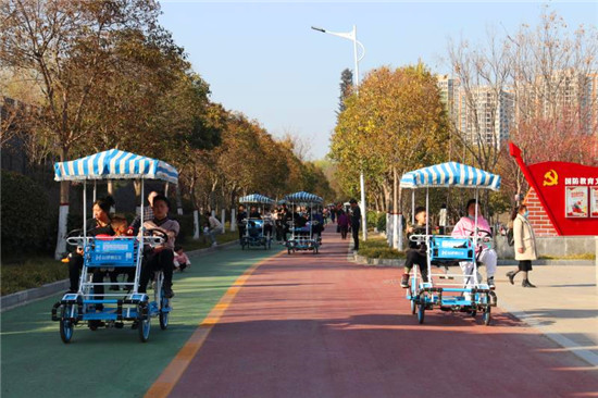 “今天真暖和。”2月19日,風和日麗,周口國防教育園內湖水蕩漾,四周的迎春花、梅花相繼開放,吸引了許多市民帶著孩子前往踏春賞花,接受國防教育。周口日報·周道客戶端記者 高洪馳 攝