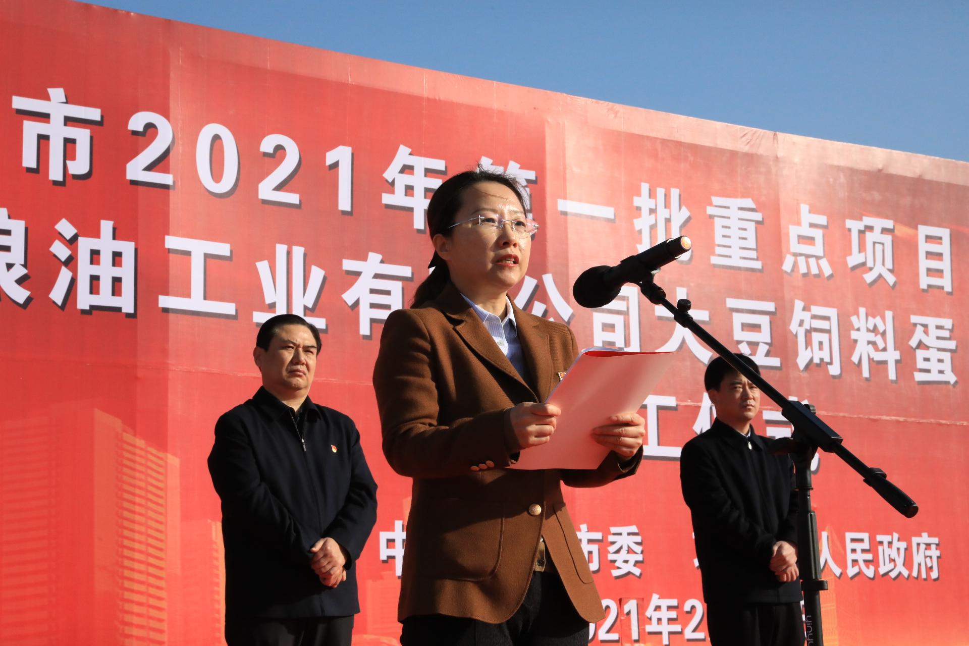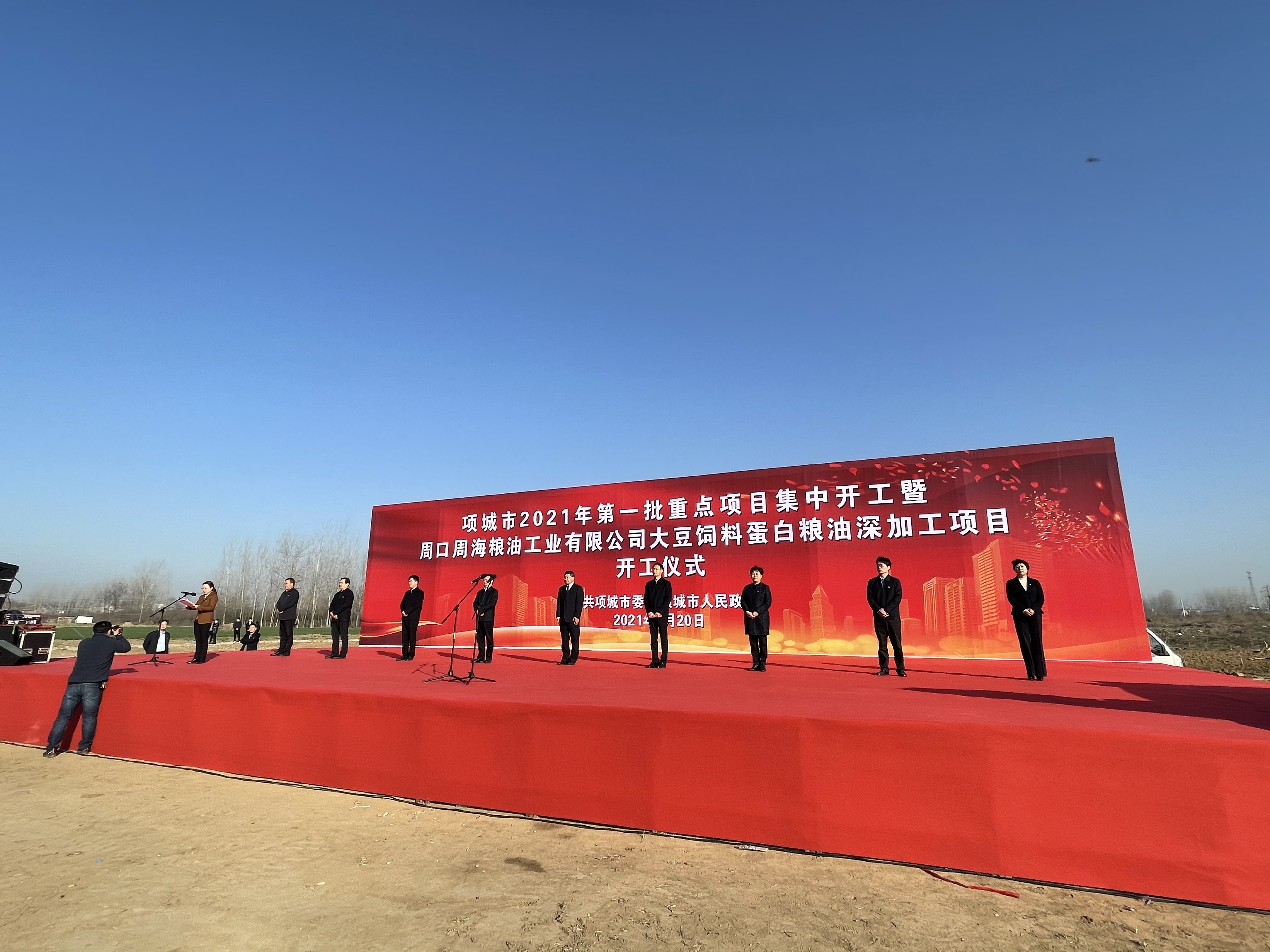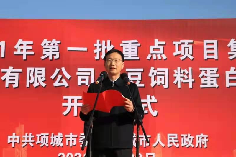 2月20上午,項(xiàng)城市2021年第一批重點(diǎn)項(xiàng)目集中開工暨周口周海糧油工業(yè)有限公司大豆飼料蛋白糧油深加工項(xiàng)目開工儀式在產(chǎn)業(yè)集聚區(qū)舉行,項(xiàng)城市委書記趙丹、市長(zhǎng)王富生和市領(lǐng)導(dǎo)劉體峰、王玉玲、張森、毛磊、陳志、張愛玲、韓衛(wèi)東出席儀式。