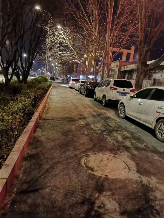 當(dāng)晚9時(shí)30分許,記者途經(jīng)周口市慶豐街婦幼保健院門前。在路北的非機(jī)動(dòng)車道上,借著路燈燈光,記者看到一個(gè)身影正在晃動(dòng)。他手持一根撬杠,對(duì)著腳下的窨井蓋反復(fù)撬動(dòng)、調(diào)整。深夜時(shí)分,附近的居民樓里早已是萬(wàn)家燈火,當(dāng)居民們圍坐在家中放松休閑、其樂(lè)融融時(shí),為什么他還在加班忙碌?記者決定走近看個(gè)究竟。