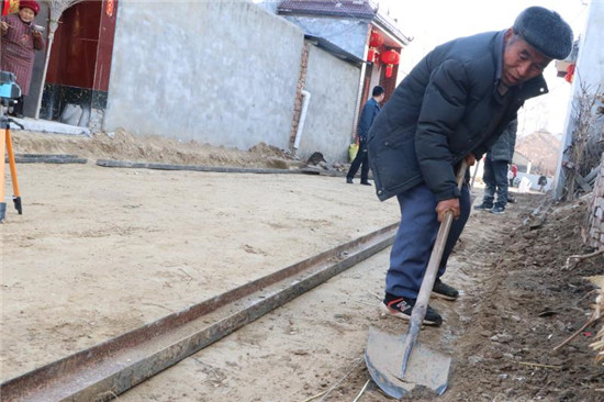 在宋河鎮(zhèn)劉橋村,支部書記張殿魁正在帶領(lǐng)村民平整路面。“我們村的主街道幾年前就通了水泥路,但是部分小巷子因經(jīng)費(fèi)不足一直沒有修通?!睆埖羁f,年初鎮(zhèn)黨委組織召開全鎮(zhèn)在外返鄉(xiāng)人士優(yōu)秀代表座談會(huì),得到了在外鄉(xiāng)賢的積極支持,部分鄉(xiāng)賢捐款,帶動(dòng)村內(nèi)群眾籌集費(fèi)用,現(xiàn)在水泥路即將覆蓋全村大街小巷。