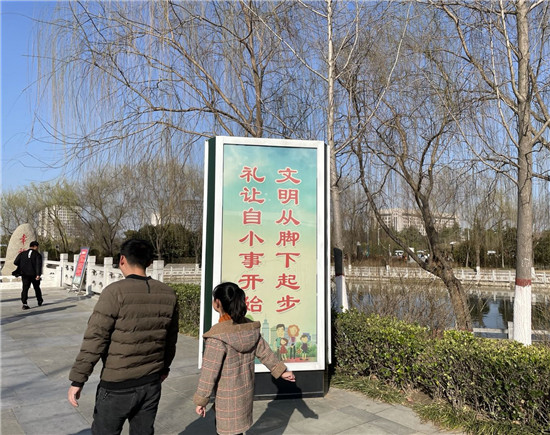 2017年8月18日,周口市委、市政府隆重召開創(chuàng)建全國綠化模范城、國家園林城市、全國雙擁模范城、國家衛(wèi)生城市、全國文明城市提名城市工作動員大會。此后,干部群眾同心同德、共同努力,我市的城市面貌和市民的精神風貌發(fā)生了巨大變化。2020年12月16日,周口市第四屆人民代表大會常務委員會第二十七次會議通過了《周口市文明行為促進條例》,該條例已于2021年1月1日實施。條例中第十四條規(guī)定公民應當文明旅游,應做到服從景區(qū)景點管理,愛護景區(qū)景點公共設施;不損害名勝古跡、珍貴文物、古樹名木及其他重要歷史文化遺產(chǎn),不刻畫、不涂污、不攀爬,不違反規(guī)定拍照、攝像、觸摸。在文明出游漸成市民自覺和共識的基礎上,又從制度層面進一步引導市民樹立文明出游從我做起、從現(xiàn)在做起的意識。③52021年1月,我市已順利入選全國文明城市提名城市。向全國文明城市沖擊,我們信心百倍。