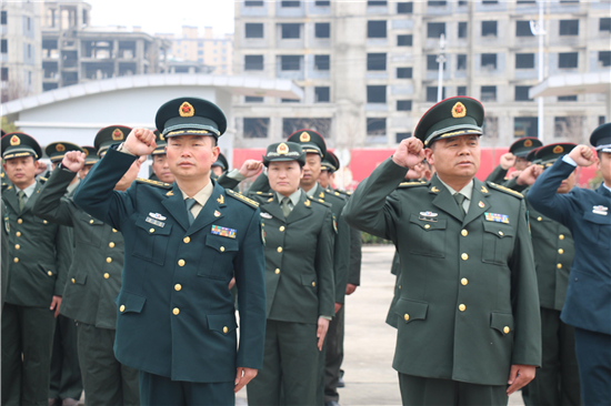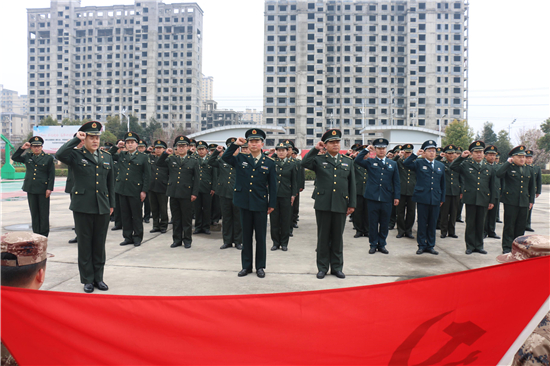 2月26日下午14時(shí),西華縣人武部營(yíng)區(qū)內(nèi),鮮紅的黨旗迎風(fēng)飄揚(yáng)。來(lái)自全縣17個(gè)鄉(xiāng)鎮(zhèn)、5個(gè)城區(qū)辦事處武裝部的全體專(zhuān)武干部黨員與該部現(xiàn)役干部、文職、職工黨員共計(jì)60余人集聚這里,隆重集體過(guò)“政治生日”。