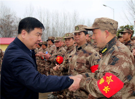 8時30分,在嘹亮的《中國人民解放軍軍歌》聲中,訓練動員會準點舉行??h委書記、縣人武部黨委第一書記李剛為參訓人員下達了開訓指令,并向踴躍應(yīng)征入伍,參加教育訓練的擬定新兵表示祝賀!他指出,新兵役前教育訓練重點是打牢新兵依法服兵役意識、參軍保國思想基礎(chǔ)和基本體能基礎(chǔ),讓應(yīng)征青年提前適應(yīng)軍營生活環(huán)境,確保為部隊輸送優(yōu)質(zhì)兵員。