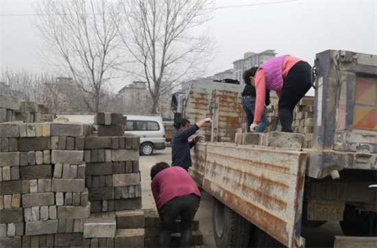 劉興田是小劉莊行政村一名老黨員,春節(jié)前他們家已準(zhǔn)備好了各種建材,計劃過了正月十五就蓋房子,40多年前的6000余塊老藍(lán)磚碼放的整整齊齊,每塊足足都有5斤重。當(dāng)村干部劉紅強(qiáng)找到他,希望他能支援聚臺崗紅色水東文旅紀(jì)念工程建設(shè)時,劉興田毫不猶豫答應(yīng)了。“這些老磚都是手工泥坯子燒制的,去年有個外地人出高價要買,我都沒有賣給他,能支援咱縣的這個項目建設(shè),我感到自豪,你們現(xiàn)在就可以拉走!”