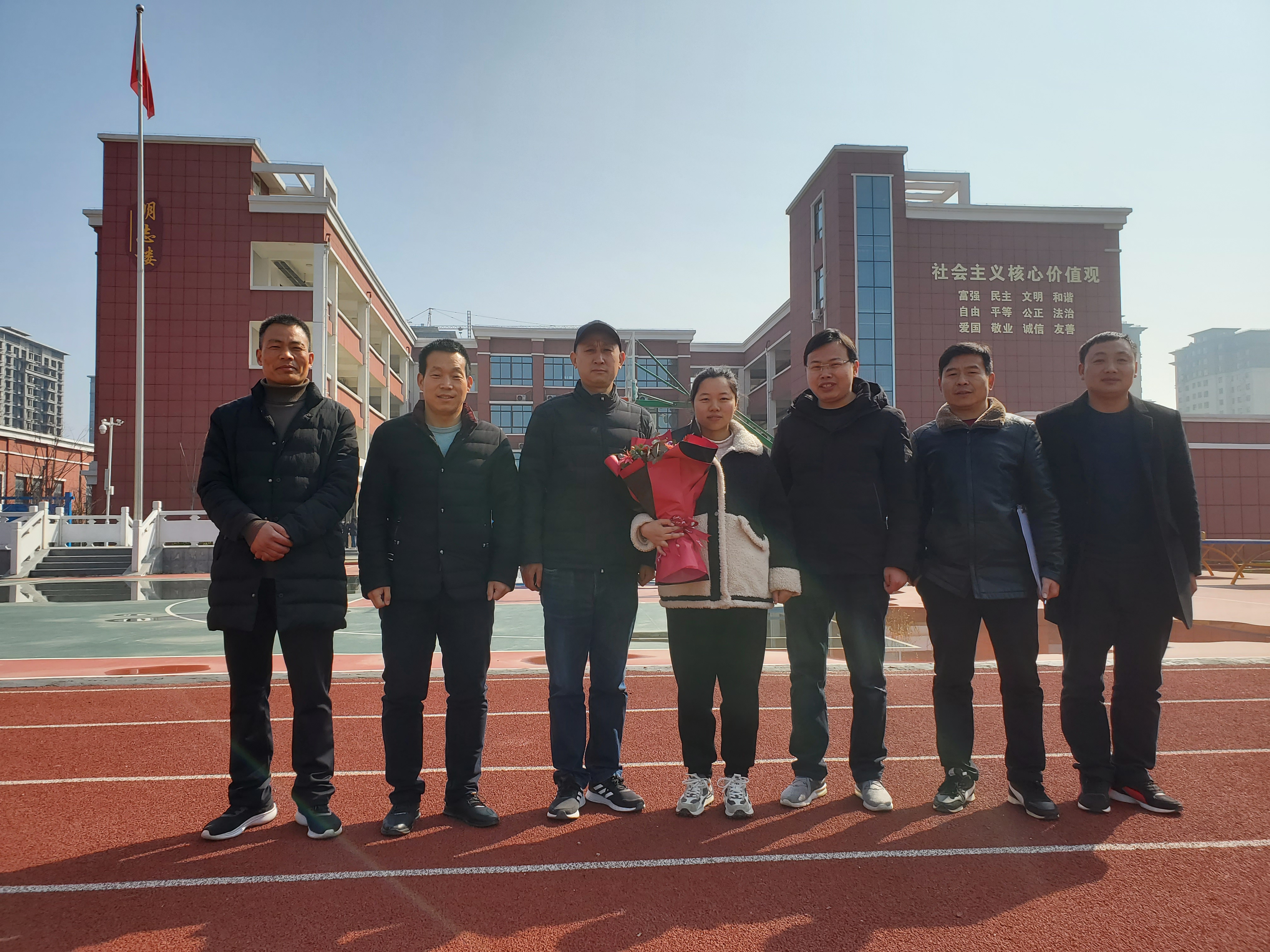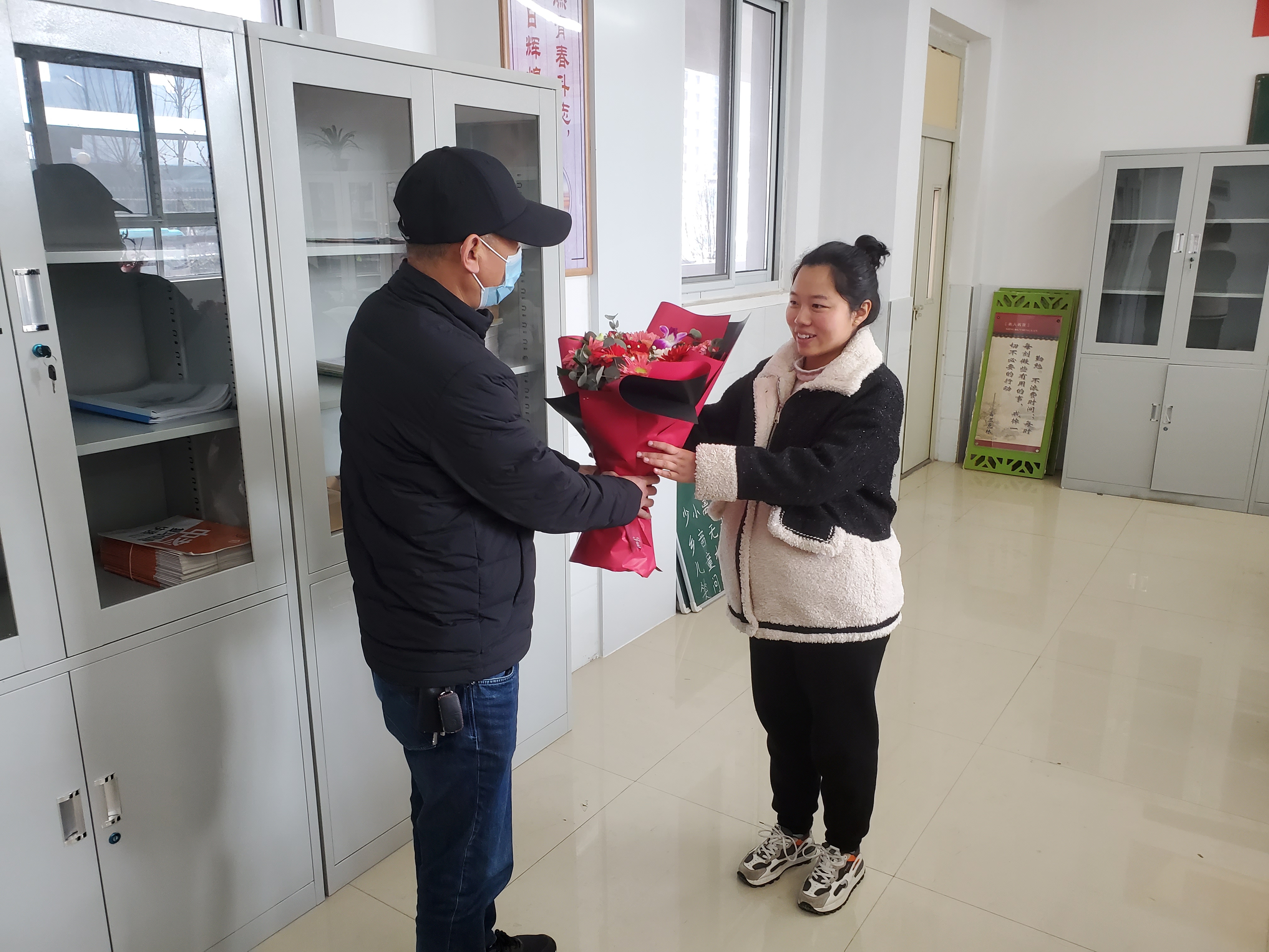 3月2日,教師辦公室里歡聲笑語,氣氛熱烈,學(xué)校校長文海泳帶領(lǐng)學(xué)校領(lǐng)導(dǎo)班子成員為今天過生日的袁老師送上一束鮮花并祝福她生日快樂。這是該校新學(xué)期開展的“教師過生日,學(xué)校送祝?!被顒?dòng)的一幕。