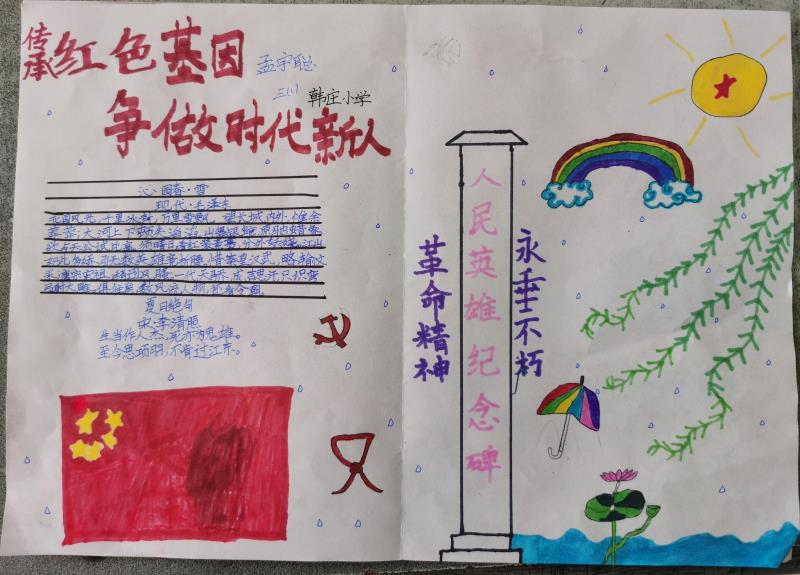 為推動“河南省新時代文明實踐推動周”活動深入開展,傳承紅色基因,爭做新時代好少年,日前,川匯區(qū)各中小學(xué)開展了“傳承紅色基因 爭做時代新人”手抄報評比活動。