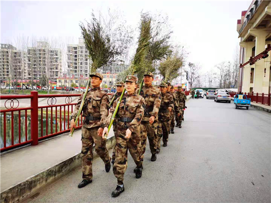 在鹿邑縣濱河公園附近,預(yù)定新兵手持鐵鍬、掃帚等工具,對道路兩旁的雜草、樹葉等進行清掃。他們有的負責(zé)清掃堆積雜物,有的負責(zé)裝車,分工明確,忙得不亦樂乎。100多米長的道路不到30分鐘就清掃完畢,煥然一新?!翱吹侥銈兙陀幸环N親切感,這段路平時需要兩個小時才能清掃一遍,現(xiàn)在你們來了,真是幫了我們的大忙!”一位環(huán)衛(wèi)工人激動地說。 “馬上就要入伍了,臨走之前為家鄉(xiāng)做一些貢獻,我覺得非常有意義!”來自趙村鄉(xiāng)的預(yù)定新兵丁永飛對記者說。
