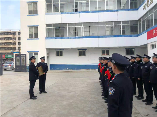會(huì)前,荷花路派出所全所民輔警舉行了迎接“荷花路派出所公安工作先進(jìn)單位”榮譽(yù)牌匾儀式,該所全體民輔警向榮譽(yù)牌行注目禮。隨后,全體民輔警在辦公室主任關(guān)丹丹的帶領(lǐng)下,重溫入警誓詞。隨后,該所教導(dǎo)員黃宏偉宣讀了《荷花路派出所關(guān)于對(duì)在“三川利劍”專項(xiàng)行動(dòng)中成績(jī)突出的先進(jìn)中隊(duì)和先進(jìn)個(gè)人予以表彰的決定》,對(duì)先進(jìn)中隊(duì)和先進(jìn)民輔警頒發(fā)了荷花路派出所榮譽(yù)證書和獎(jiǎng)品,大家與優(yōu)秀民輔警集體合影留念。