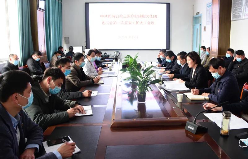 3月5日下午,中共鄲城縣第三醫(yī)療健康服務(wù)集團委員會第一次黨委(擴大)會議在總醫(yī)院鄲城縣中心醫(yī)院(原鄲城二院)小會議室召開。集團黨委委員出席,總醫(yī)院及轄區(qū)基層醫(yī)療衛(wèi)生單位黨支部委員參加,黨辦主任韓學(xué)貞主持會議。