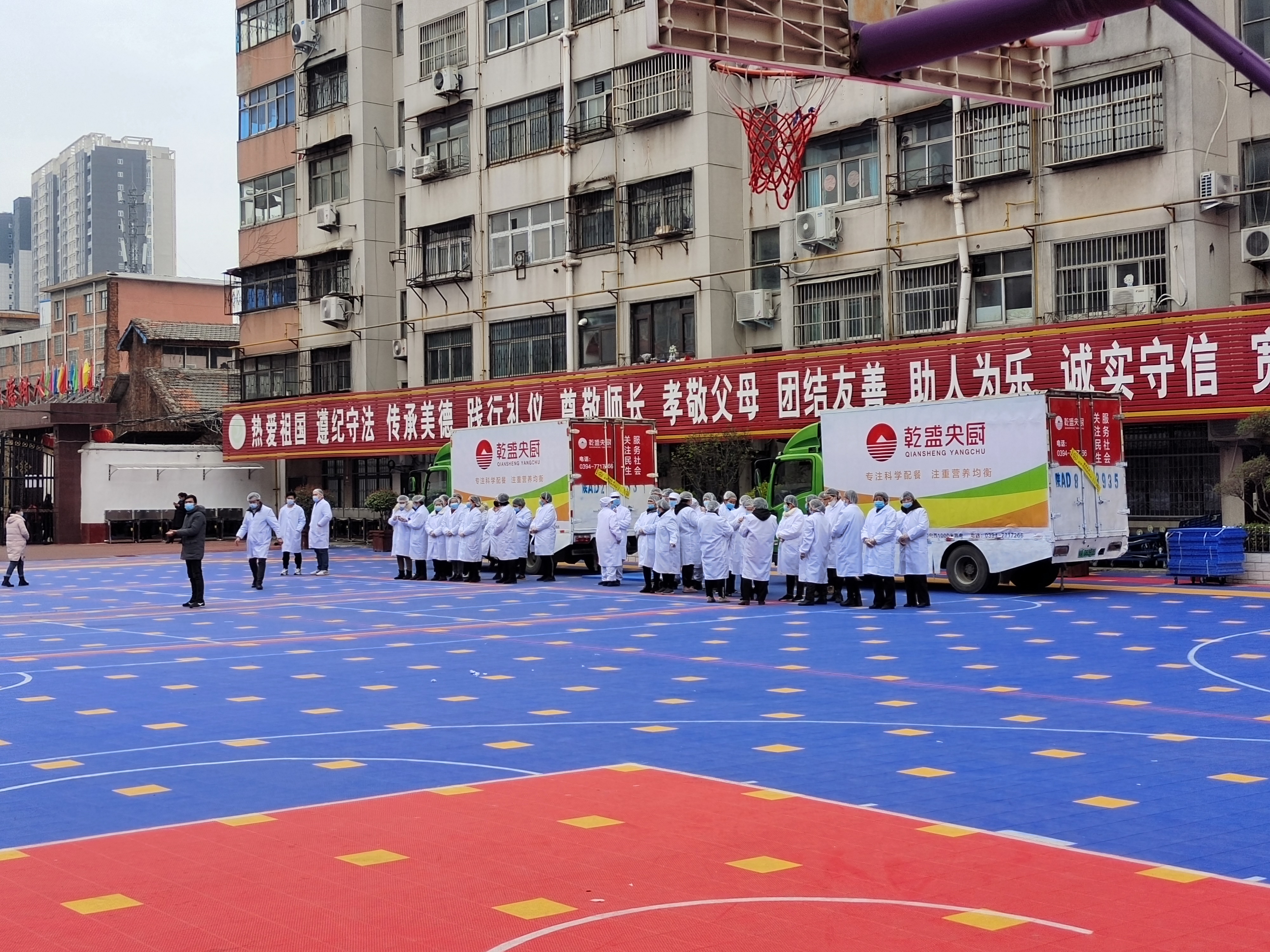 11時(shí)許,13000余份熱騰騰的飯菜即將送到周口市中心城區(qū)中小學(xué)生手中,直播團(tuán)隊(duì)對(duì)七一路二小的配送情況進(jìn)行現(xiàn)場(chǎng)直播。兩輛運(yùn)餐大卡車(chē),20余名工作人員整裝待發(fā),乾盛央廚鄭州總公司的營(yíng)銷(xiāo)部負(fù)責(zé)人現(xiàn)場(chǎng)指揮調(diào)度七一路二小的發(fā)餐工作。揭掉卡車(chē)上的封條,留樣,測(cè)溫,裝車(chē),按班分送,分發(fā)不銹鋼餐具,“哇!獅子頭!!”在孩子們的驚呼聲中,兩葷一素,一份米一份湯,熱氣騰騰地盛到孩子手中的餐具中?!昂⒆觽兂圆怀缘娘栄剑俊泵鎸?duì)各直播平臺(tái)上網(wǎng)友的提問(wèn),乾盛央廚鄭州總公司營(yíng)銷(xiāo)部負(fù)責(zé)人回答:“我們提前有準(zhǔn)備,飯、菜我們都免費(fèi)加,保證孩子們都吃飽,請(qǐng)家長(zhǎng)朋友們放心?!?/p>