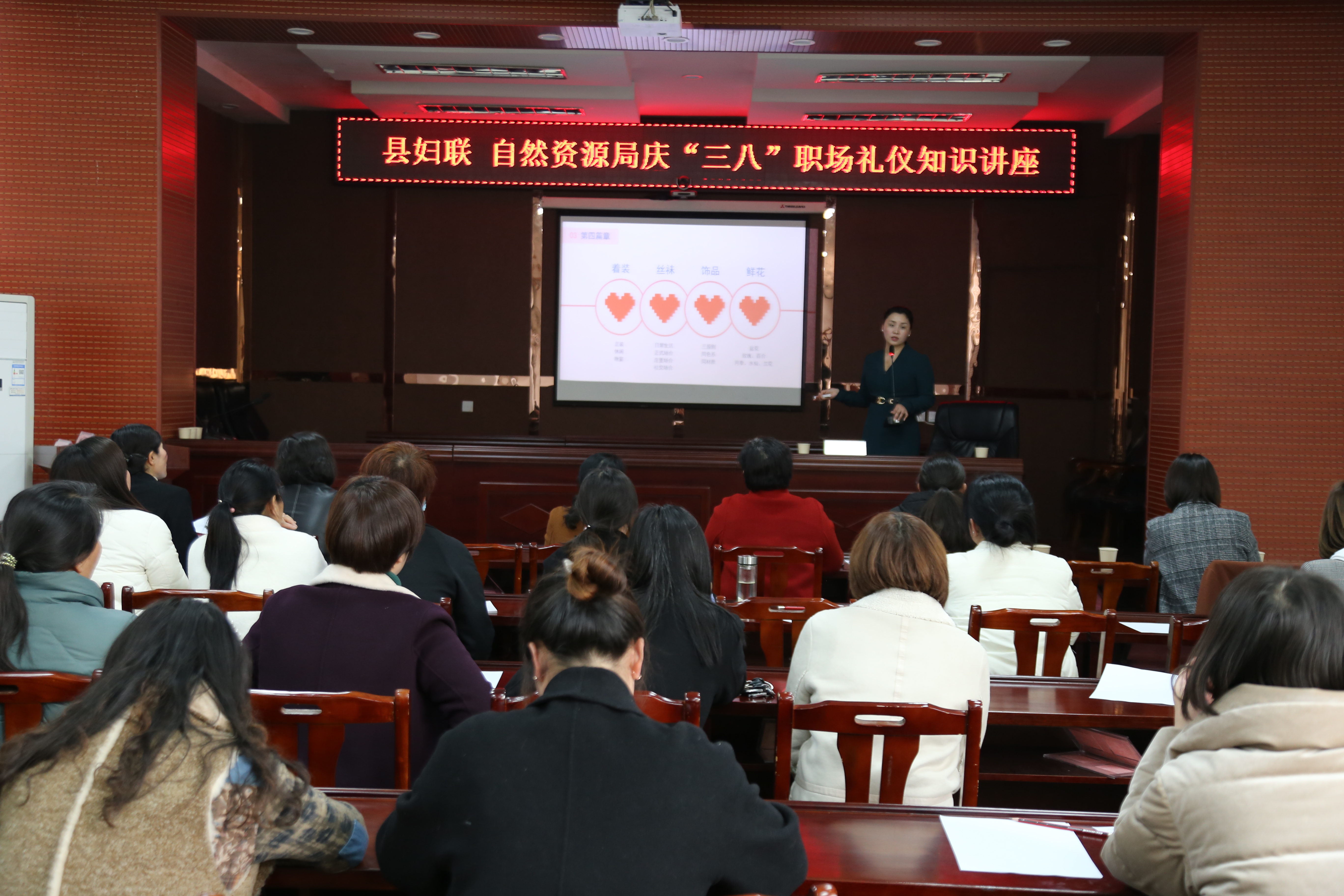 在“三八”節(jié)來(lái)臨之際,為自然資源系統(tǒng)女干部“知禮儀、守禮節(jié)”,進(jìn)一步豐富職場(chǎng)禮儀知識(shí),提升處理公共關(guān)系的技能,更好地服務(wù)大局、服務(wù)自然資源發(fā)展,3月5日,鄲城縣自然資源局舉辦慶“三八”職場(chǎng)禮儀知識(shí)講座,邀請(qǐng)中國(guó)青年創(chuàng)業(yè)導(dǎo)師、河南省先鋒國(guó)學(xué)文化研究院副院長(zhǎng)張卉潔講授禮儀知識(shí),自然資源局班子成員和局直各單位的100余名女干部職工參加,縣婦聯(lián)副主席趙彩花出席講座。