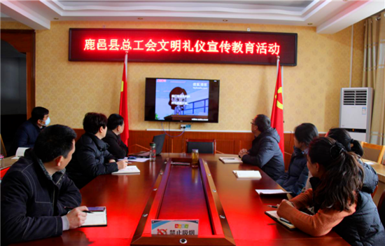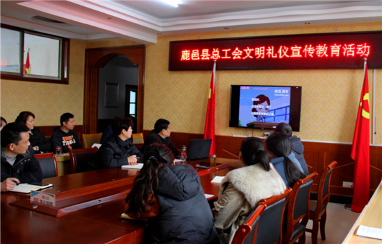 鹿邑縣總工會(huì)全體人員集中觀看了《常州市市級(jí)機(jī)關(guān)工作人員文明禮儀宣傳教育片》。從接聽電話、公務(wù)接待、參加會(huì)議、乘坐電梯、公共場所、文明觀演、文明出行等詳細(xì)介紹了機(jī)關(guān)工作人員應(yīng)做到的禮儀規(guī)范,提醒大家各項(xiàng)禮儀中的注意事項(xiàng)。