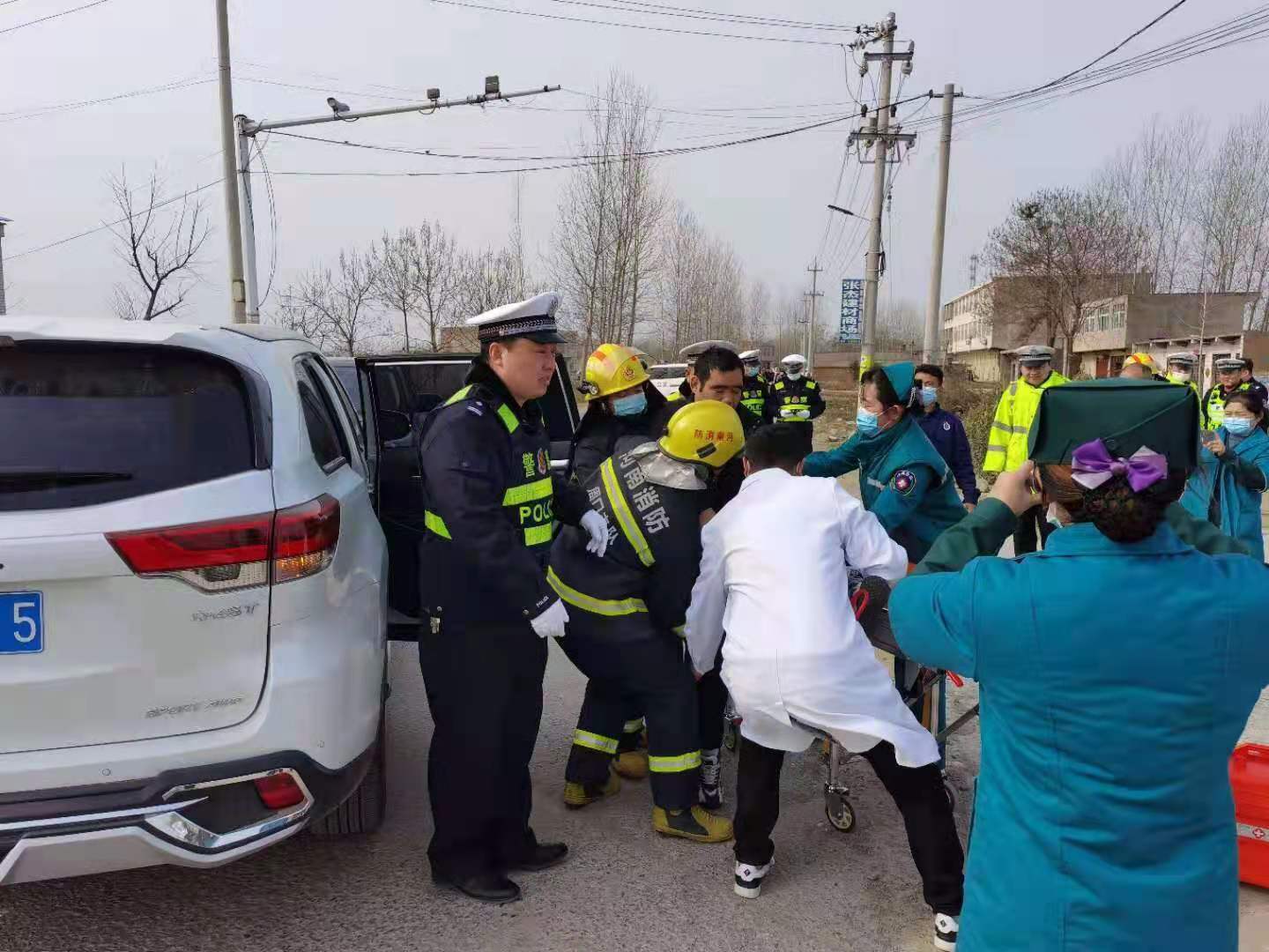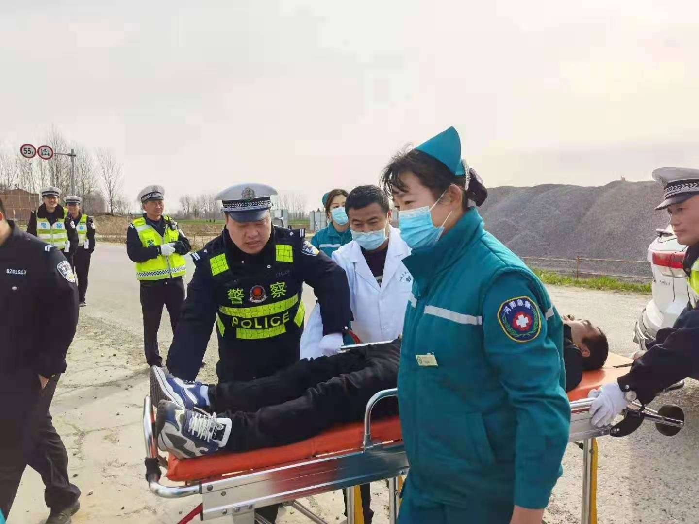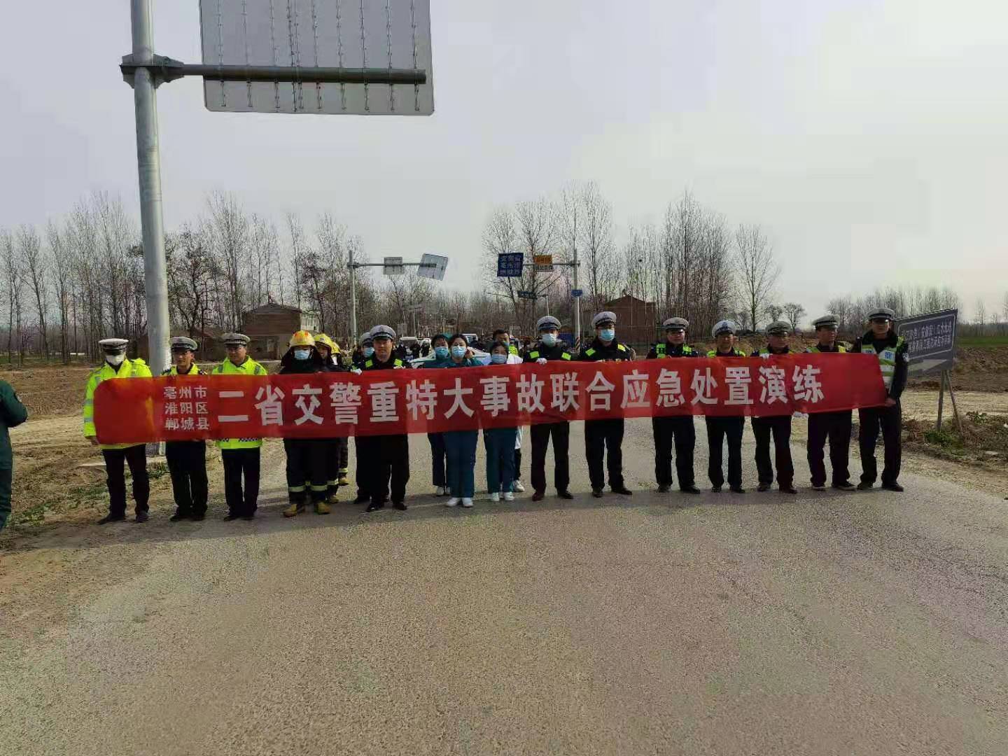 為防止和減少交通事故造成的人員傷害,檢驗緊急情況下快速有效的聯(lián)合交通事故救援和應(yīng)急機制,3月10日上午8時,河南省周口市鄲城縣交警大隊事故中隊聯(lián)系周口市淮陽區(qū)交警大隊事故中隊,鄲城縣消防應(yīng)急南豐中隊,鄲城縣中心醫(yī)院與安徽省亳州市交警支隊四大隊雙溝中隊在豫皖兩省交界處,開展惡劣天氣聯(lián)合應(yīng)急處置演練、道路中斷聯(lián)合應(yīng)急處置演練和重特大事故聯(lián)合應(yīng)急處置演練。