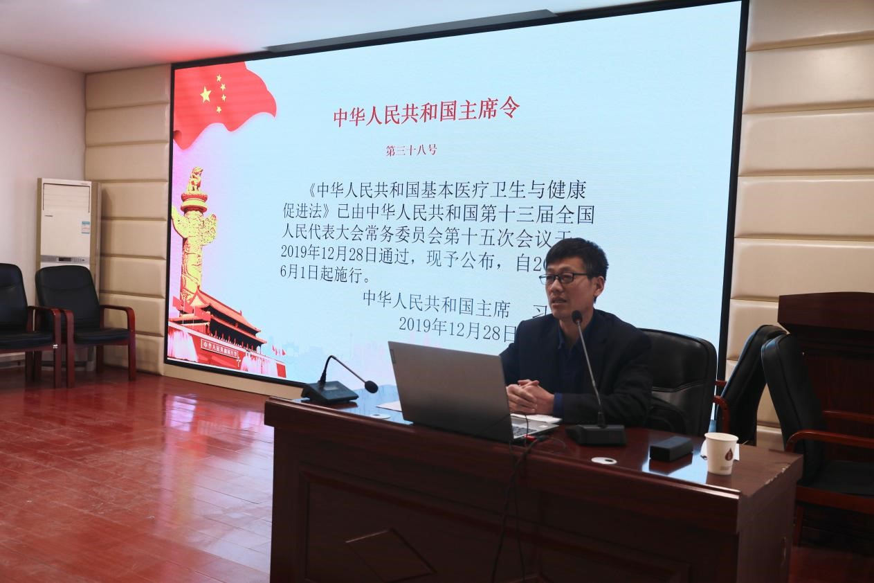 3月10日下午,為學習貫徹《中華人民共和國基本醫(yī)療衛(wèi)生與健康促進法》(以下簡稱《衛(wèi)健法》),鄲城縣疾控中心開展“貫徹衛(wèi)生健康促進法,堅持為人民健康服務(wù)《衛(wèi)健法》培訓會”,疾控中心全體職工參加,副書記劉文濤主持。