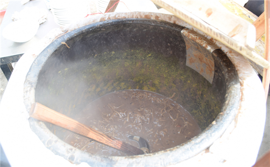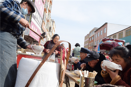 東夏亭鎮(zhèn)的劉家豆沫沒有青菜,豆腐皮多,格外粘稠,和周口其他地方的豆沫不同,味道醇厚、清香,是鎮(zhèn)上最受歡迎的一道美味,從清晨集市開始到中午散集,前來喝豆沫的絡繹不絕,兩大鍋豆沫賣個凈光。