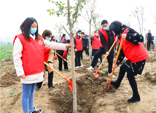 植樹現(xiàn)場(chǎng)一派熱火朝天的景象。羅文閣、李全林、王獻(xiàn)超、李建軍、王偉等身體力行,與大家一起扶正樹苗、揮鍬培土、分層踩實(shí)、堆起圍堰、提水澆灌,認(rèn)真地完成著每一道工序,栽下了一棵棵樹苗,為改善鄲城生態(tài)環(huán)境、綠化美麗家園種下了一棵棵綠色的希望。